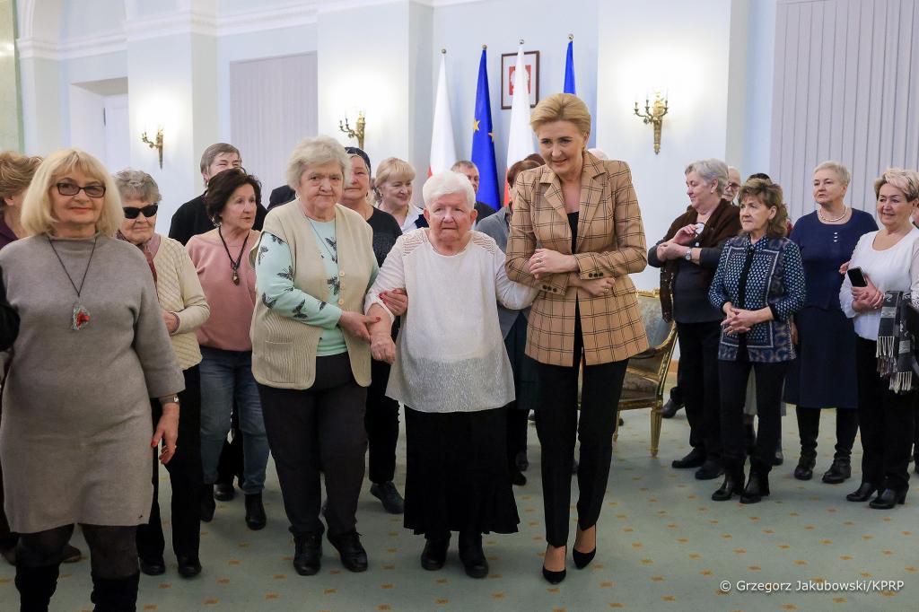 Niektórych seniorów goszczących w poniedziałek w Pałacu Prezydenckim Agata Kornhauser–Duda poznała podczas swojej wizyty w Powiatowym Centrum Kultury „Fabryczka” w Wołominie. Dzisiejsze spotkanie było okazją do rozmów o aktywnościach osób starszych, ich potencjale i roli w społeczeństwie.
