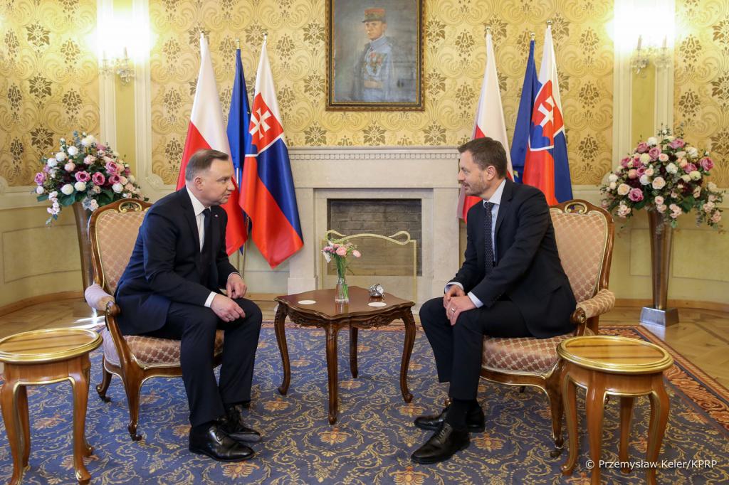 Andrzej Duda podkreślał również, że współpraca między Polską i Słowacją układa się „bardzo dobrze”. – Cieszę się, że możemy nawzajem na siebie liczyć, bo ten trudny czas, w jakim w tej chwili znalazły się nasze kraje, nasze narody, pokazuje właśnie, że możemy na siebie liczyć jako sąsiedzi. Współdziałamy ze sobą, współpracujemy, jesteśmy razem członkami Sojuszu Północnoatlantyckiego i Unii Europejskiej, współpracujemy ze sobą w wielu formatach takich jak format Trójmorza – mówił.